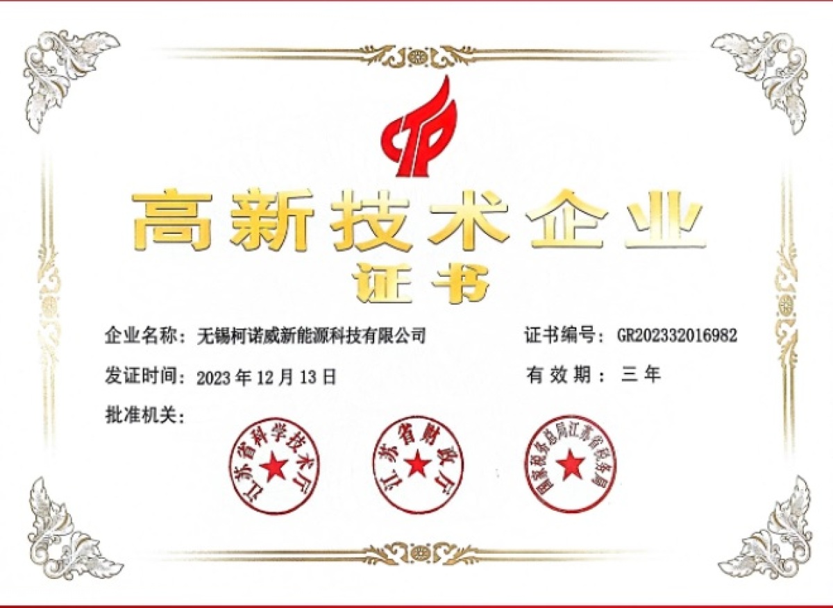 2月3日,无锡柯诺威新能源科技有限公司荣获中共江苏无锡经济开发区工作委员 ...